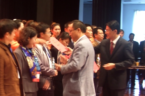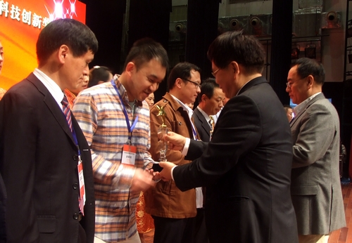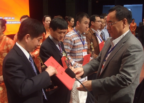 工信部節(jié)能與綜合利用司資源綜合利用處處長黃健忠、棗莊市政府副市長張兵向獲得十大科技創(chuàng)新獎及十大管理創(chuàng)新獎的企業(yè)或企業(yè)家頒獎。